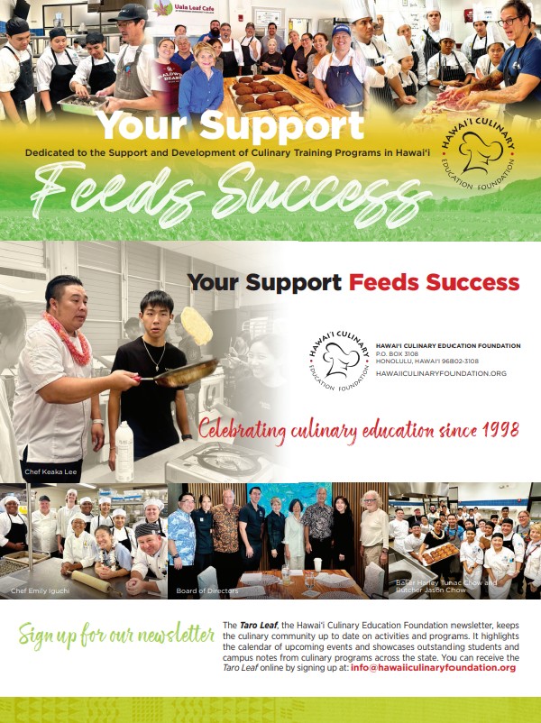 Your contribution helps mentor students, fund transformative programs, and preserve our unique culinary heritage. Join our ‘ohana.